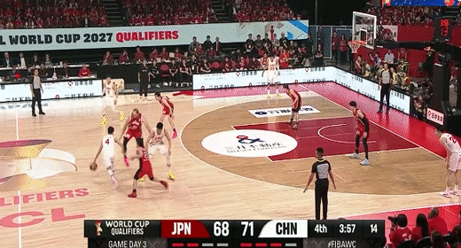 廖三宁突分朱俊龙三分命中!中国男篮61-58日本