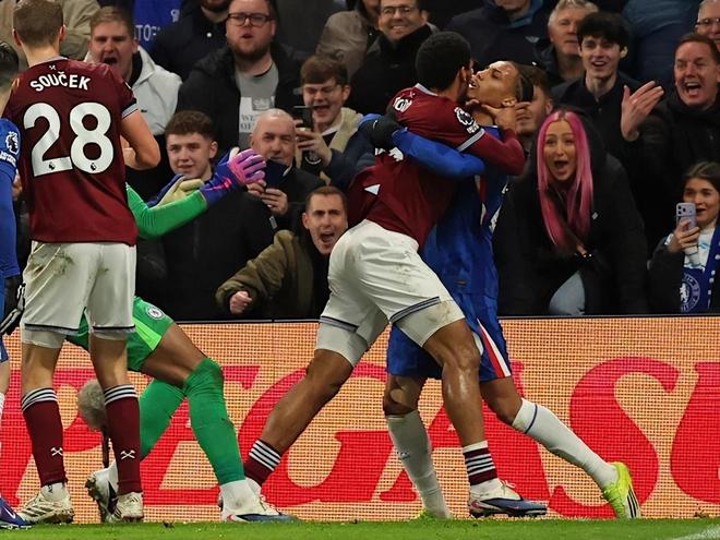 这场伦敦德比火药味十足。切尔西在2-0领先的情况下被逆转,补时阶段以2-3落后,情绪彻底失控。比赛末段,西汉姆替补特拉奥雷与切尔西边卫库库雷利亚在角球区争抢,冲突就此爆发: